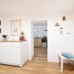 Completano l'appartamento: un angolo cottura accessoriato con tavolo da pranzo e due ampi bagni con doccia.