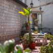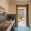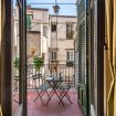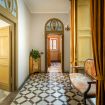 L’appartamento si apre su un corridoio che conduce a due camere: una con letti singoli e bagno adiacente vintage con carta da parati all'inglese, l’altra camera con letto matrimoniale e bagno con doccia en suite. Proseguendo, si trova la cucina con accesso diretto alla terrazza. Il salone nobiliare, con affreschi e arredi eleganti, precede la terza camera matrimoniale, anch’essa con affaccio sulla terrazza. Gli spazi combinano armoniosamente elementi storici e comfort moderni.