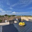 Al secondo livello, accessibile tramite una scala esterna, si trova una terrazza con vista mare, una vera oasi di relax con cucina esterna, tavolo da pranzo e zona solarium.